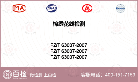 棉绣花线检测服务详情1、缝纫用涤纶本色纱线FZ/T 63001-2014 —— 涤纶本色缝纫用纱线2、棉工艺绣花绞线FZ/T 63003-2011 —— 棉工艺绣花绞线3、精梳编结绒线FZ/T 71004-2015 —— 精梳编结绒线4、涤纶低弹丝GB/T 14···