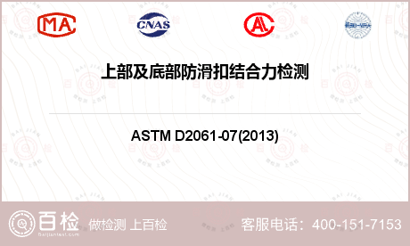 上部及底部防滑扣结合力检测服务详情1、标准试验方法 拉链强度 ASTM D2061-2007 (2013)---拉链拉链强力项目检测2、标准试验方法 拉链使用性 ASTM D2062-2003(2014)---拉链拉链强力项目检测3、拉链规范 BS 3084:200···