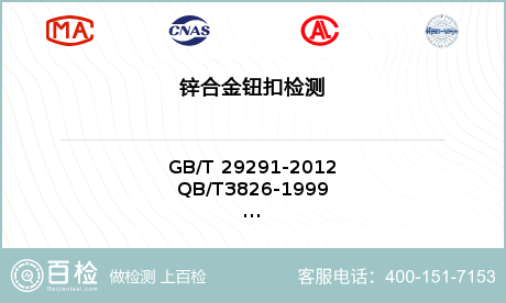 锌合金钮扣检测服务详情1、钮扣通用技术要求和检测方法 锌合金类---锌合金钮扣扣件结合力项目检测2、钮扣通用技术要求和检测方法 锌合金类---锌合金钮扣眼孔拉力项目检测3、钮扣通用技术要求和检测方法 锌合金类---锌···