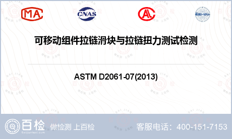 可移动组件拉链滑块与拉链扭力测试检测服务详情1、标准试验方法 拉链强度 ASTM D2061-2007 (2013)---拉链拉链强力项目检测2、标准试验方法 拉链使用性 ASTM D2062-2003(2014)---拉链拉链强力项目检测3、拉链规范 B···