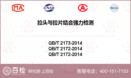 拉头与拉片结合强力检测服务详情1、尼龙拉链 QB/T 2173-2014 7.5---尼龙拉链洗涤后外观项目检测2、纺织品 试验用家庭洗涤和干燥程序 GB/T 8629-2017 7.5.2---尼龙拉链外观变化项目检测3、尼龙拉链 QB/T 2173-2014 7.···