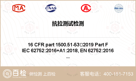抗拉测试检测服务详情1、8岁以下儿童的玩具及其他物品的模拟使用和滥用的测试方法 第F部分:拉伸测试 16 CFR part 1500.51-53:2019 Part F---附件(拉链,揿钮,纽扣等)抗拉测试项目检测2、拉链使用性试验方法 AST···