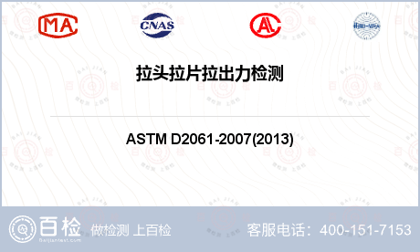 拉头拉片拉出力检测服务详情1、标准试验方法 拉链强度 ASTM D2061-2007 (2013)---拉链拉链强力项目检测2、标准试验方法 拉链使用性 ASTM D2062-2003(2014)---拉链拉链强力项目检测3、拉链规范 BS 3084:2006(R2017···