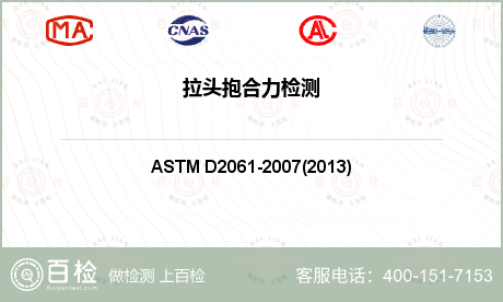 拉头抱合力检测服务详情1、标准试验方法 拉链强度 ASTM D2061-2007 (2013)---拉链拉链强力项目检测2、标准试验方法 拉链使用性 ASTM D2062-2003(2014)---拉链拉链强力项目检测3、拉链规范 BS 3084:2006(R2017)--···