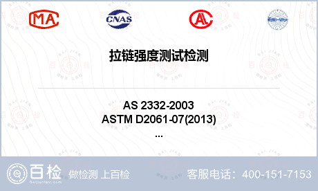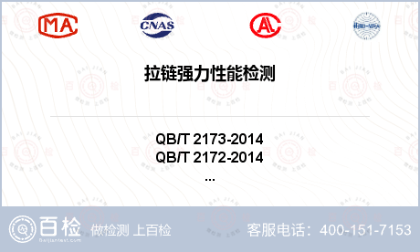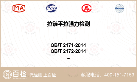 拉链强力性能检测服务详情1、尼龙拉链/QB/T 2173-2014(7.2.5)---尼龙拉链/拉链开尾单边上止强力项目检测2、尼龙拉链/QB/T 2173-2014(7.2.6)---尼龙拉链/拉链开尾平拉强力项目检测3、尼龙拉链/QB/T 2173-2014(7.2.8)-···