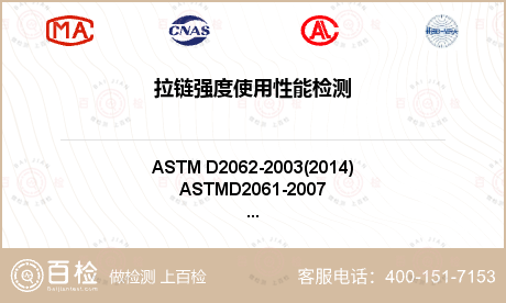 拉链往复性测试检测服务详情1、标准试验方法 拉链强度 ASTM D2061-2007 (2013)---拉链拉链强力项目检测2、标准试验方法 拉链使用性 ASTM D2062-2003(2014)---拉链拉链强力项目检测3、拉链规范 BS 3084:2006(R2017···