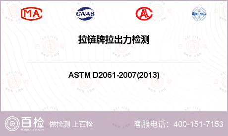拉链牌拉出力检测服务详情1、标准试验方法 拉链强度 ASTM D2061-2007 (2013)---拉链拉链强力项目检测2、标准试验方法 拉链使用性 ASTM D2062-2003(2014)---拉链拉链强力项目检测3、拉链规范 BS 3084:2006(R2017)···