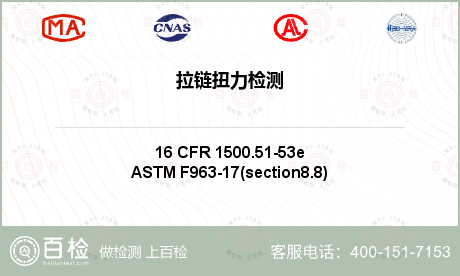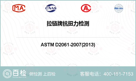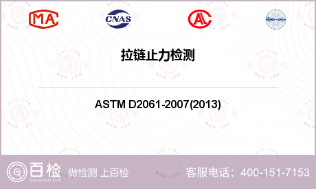 拉链拉头拉片抗扭强力检测服务详情1、标准试验方法 拉链强度 ASTM D2061-2007 (2013)---拉链拉链强力项目检测2、标准试验方法 拉链使用性 ASTM D2062-2003(2014)---拉链拉链强力项目检测3、拉链规范 BS 3084:2006(···