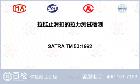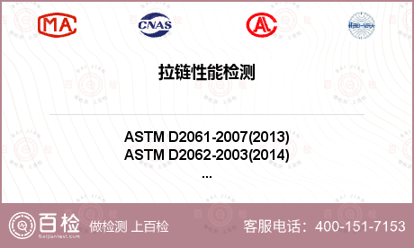 拉链止滑扣的拉力测试检测服务详情1、标准试验方法 拉链强度 ASTM D2061-2007 (2013)---拉链拉链强力项目检测2、标准试验方法 拉链使用性 ASTM D2062-2003(2014)---拉链拉链强力项目检测3、拉链规范 BS 3084:2006(···