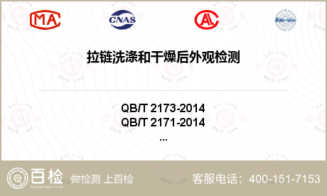 拉链洗涤和干燥后外观检测服务详情1、注塑拉链 QB/T 2172-2014---鞋革箱包拉头拉片抗扭力矩项目检测2、金属拉链 QB/T 2171-2014---鞋革箱包耐干摩擦项目检测3、轮滑鞋GB 20096-2006(5.1 )---鞋革箱包外观项目检测4···