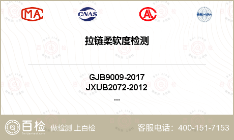 拉链柔软度检测服务详情1、标准试验方法 拉链强度 ASTM D2061-2007 (2013)---拉链拉链强力项目检测2、标准试验方法 拉链使用性 ASTM D2062-2003(2014)---拉链拉链强力项目检测3、拉链规范 BS 3084:2006(R2017)--···