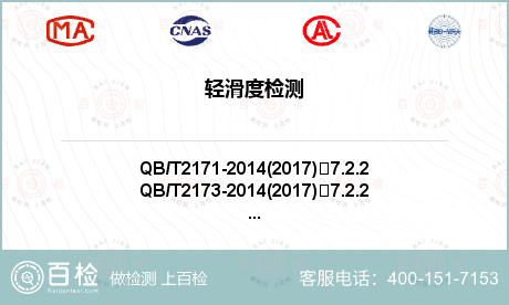 轻滑度检测服务详情1、金属拉链 QB/T 2171-2014 7.5---金属拉链洗涤后外观项目检测2、金属拉链 QB/T 2171-2014 7.3.1---金属拉链外观项目检测3、金属拉链 QB/T 2171-2014 7.1.3---金属拉链条装拉链长度项目检测4、金···